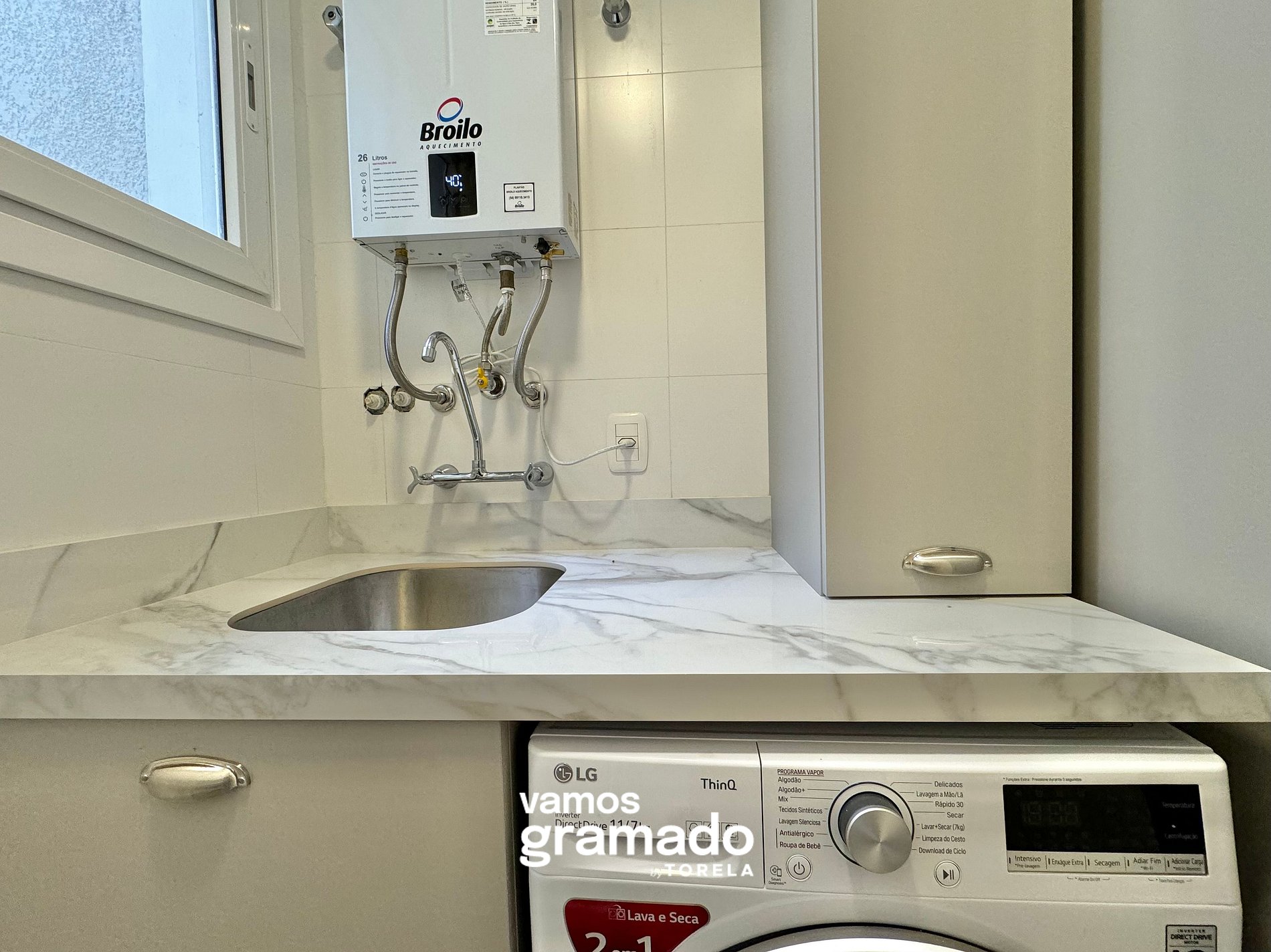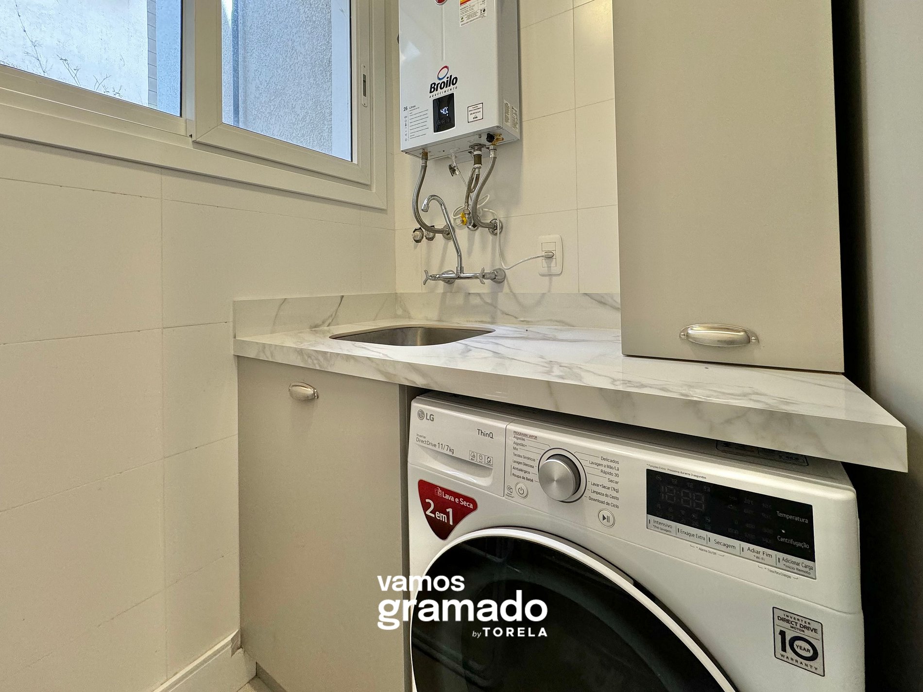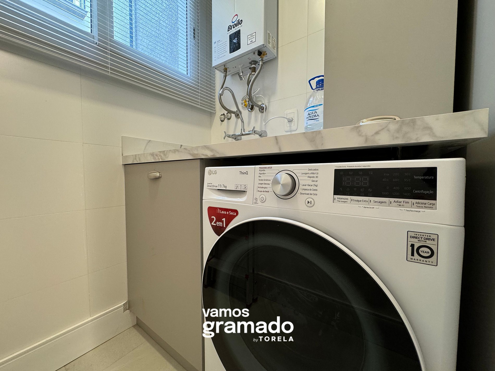 - Máquina de lavar roupas lava e seca;