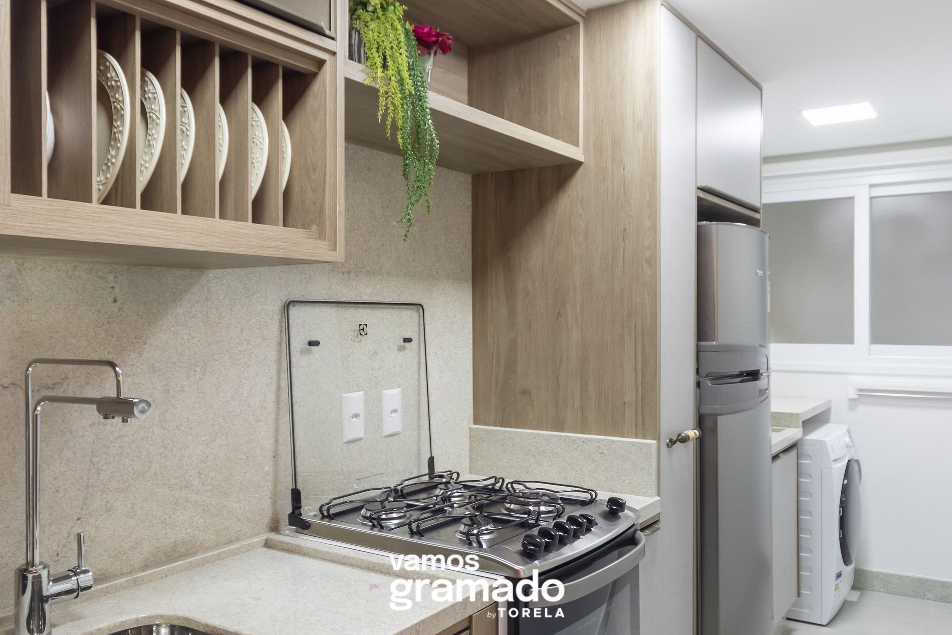 - Área de serviço com máquina lava e seca;