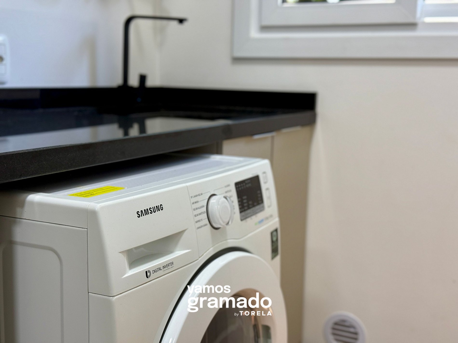 - Máquina de lavar roupas lava e seca;