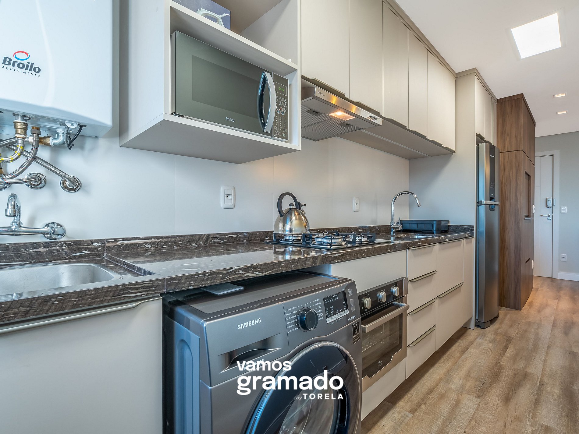 - Área de serviço com máquina lava e seca;